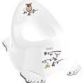 Vďaka svojmu tvaru, vysokej opierke chrbta a širokému sedátku poskytuje deťom pohodlie. Spodná strana nočníka má protišmykovú úpravu – bezpečný.