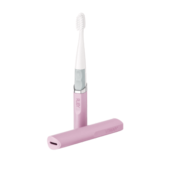 Nová sonická zubná kefka od spoločnosti Vitammy. Malá prenosná zubná kefka Ruby čistí všetky miesta medzi zubami. S ochranným krytom, ktorý chráni kefu pred nečistotami.