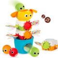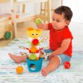 Povzbuďte svoje dieťa, aby nazhromaždilo loptičky a vhodili ich do kvetiny. Po dopade na základňu zaznie veselé zvuky. Sledujte jeho prekvapenie, keď lopta náhodne vypadne z jedného z dvoch otvorov! Táto radostná aktivita zvýši u dieťaťa pocit zručnosti a kontroly nad jeho činy a naučí ho príčine a následku.