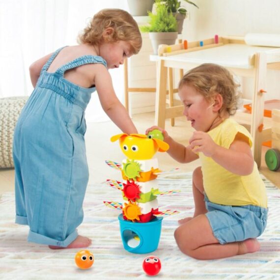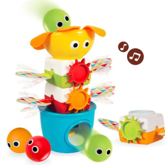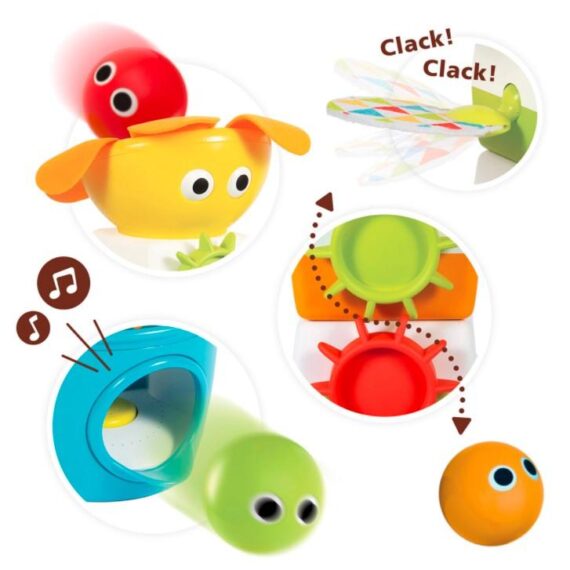Skladaním, spájaním a vhadzovaním loptičiek sa u dieťaťa rozvíja manuálnu zručnosť, koordinácia ruka-oko a hrubá motorika. Prevody na stohovacích dieloch rozvíja jemnú motoriku.